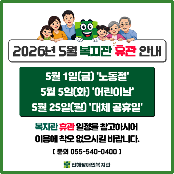 복지관 소식진해장애인복지관의 공지사항 및 소식을 알려드립니다.