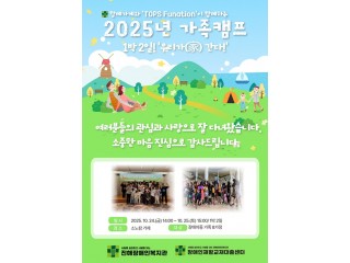함께가게와 TOPS Funation이 함께하는2025년 가족캠프‘1박 2일 우리가(家) 간다!’가지난 10월 24일 금요일~25일 일요일, 양일간소노캄 거제에서 진행되었습니다. 총 8가족이 함께한 이번 캠프에서는 서로를 알아가는 아이스브레이킹을 시작으로 자녀가 좋아하는 것, 중요하게 생각하는 것 등사람중심 한 페이지 설명서를 작성하고 함께 나누는 ...