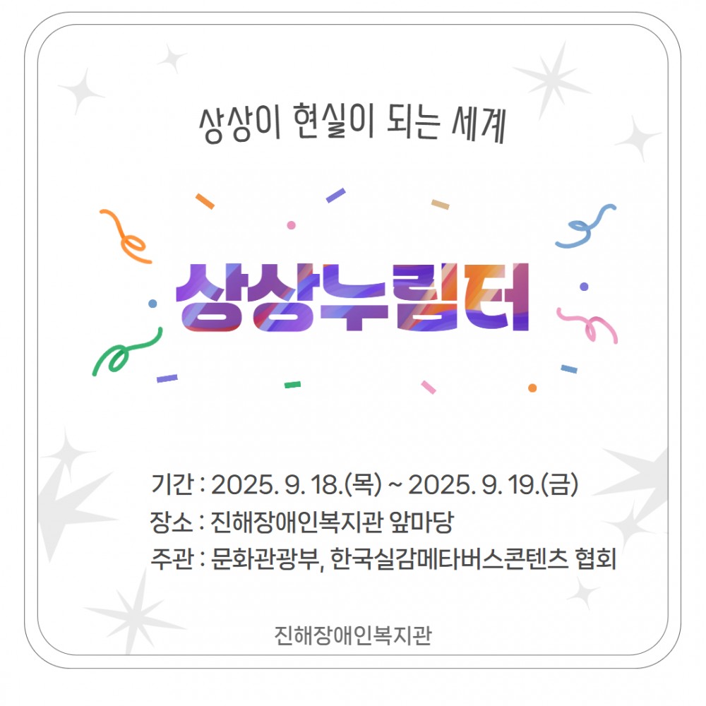 문화체육관광부와 한국실감메타버스콘텐츠협회가 주관한 **‘이동형 상상누림터’**가 지난 9월 18일과 19일, 복지관 앞마당에서 운영되었습니다.