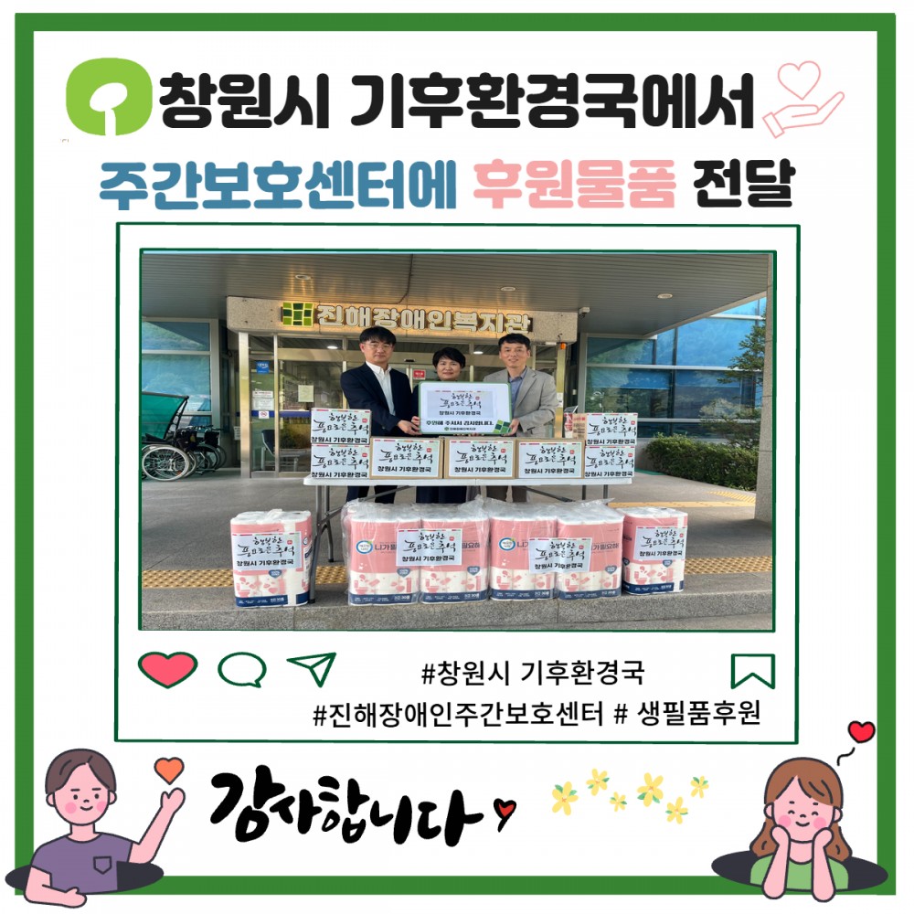 진해장애인복지관 부설) 장애인주간보호센터에 필요한 생필품 후원을 위해 찾아주셨습니다.