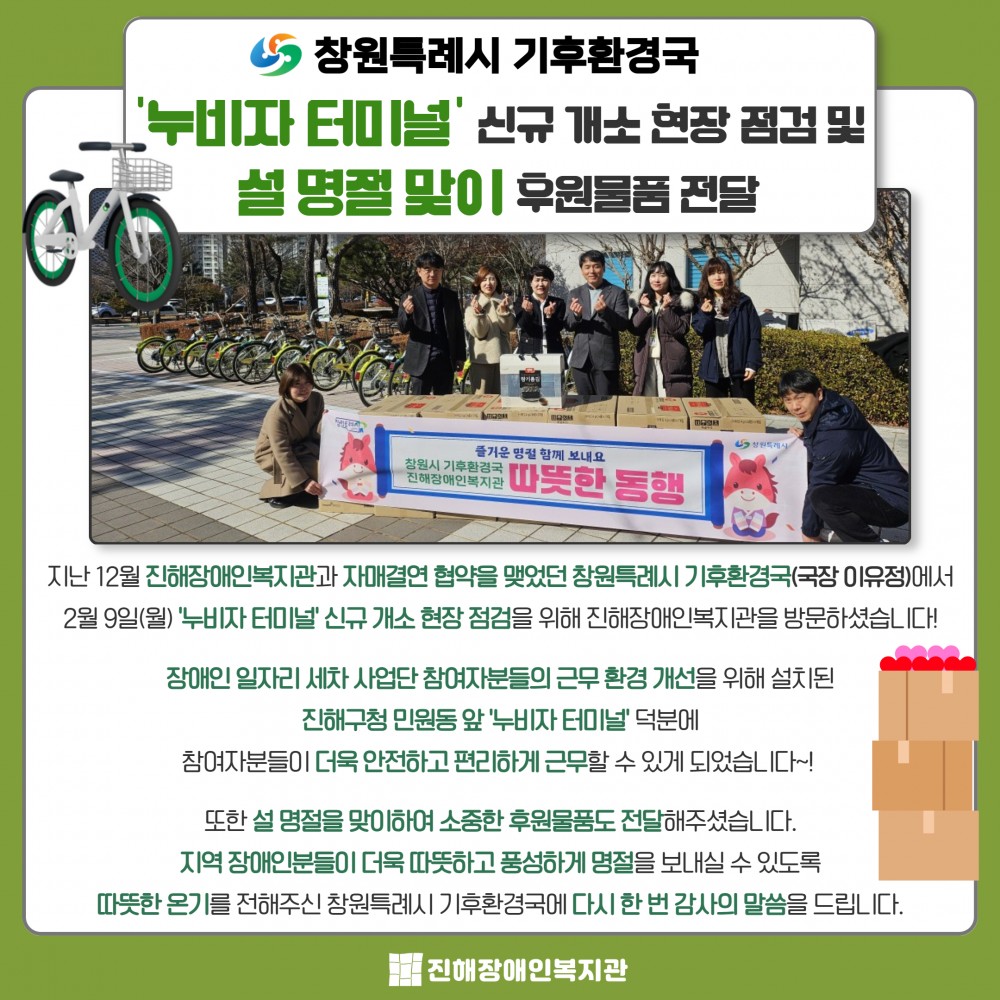 2026 <창원특례시 기후환경국x진해장애인복지관> '누비자 터미널' 신규 개소 현장 점검 및 설 명절 맞이 후원물품 전달