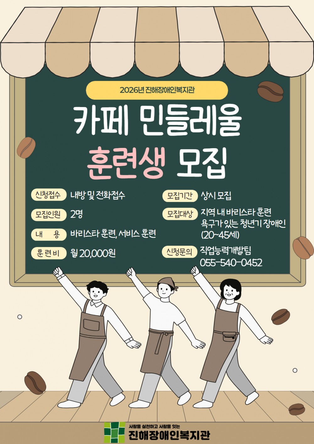 - 모집대상: 지역 내 바리스타 훈련 욕구가 있는 청년기 장애인(20~45세)